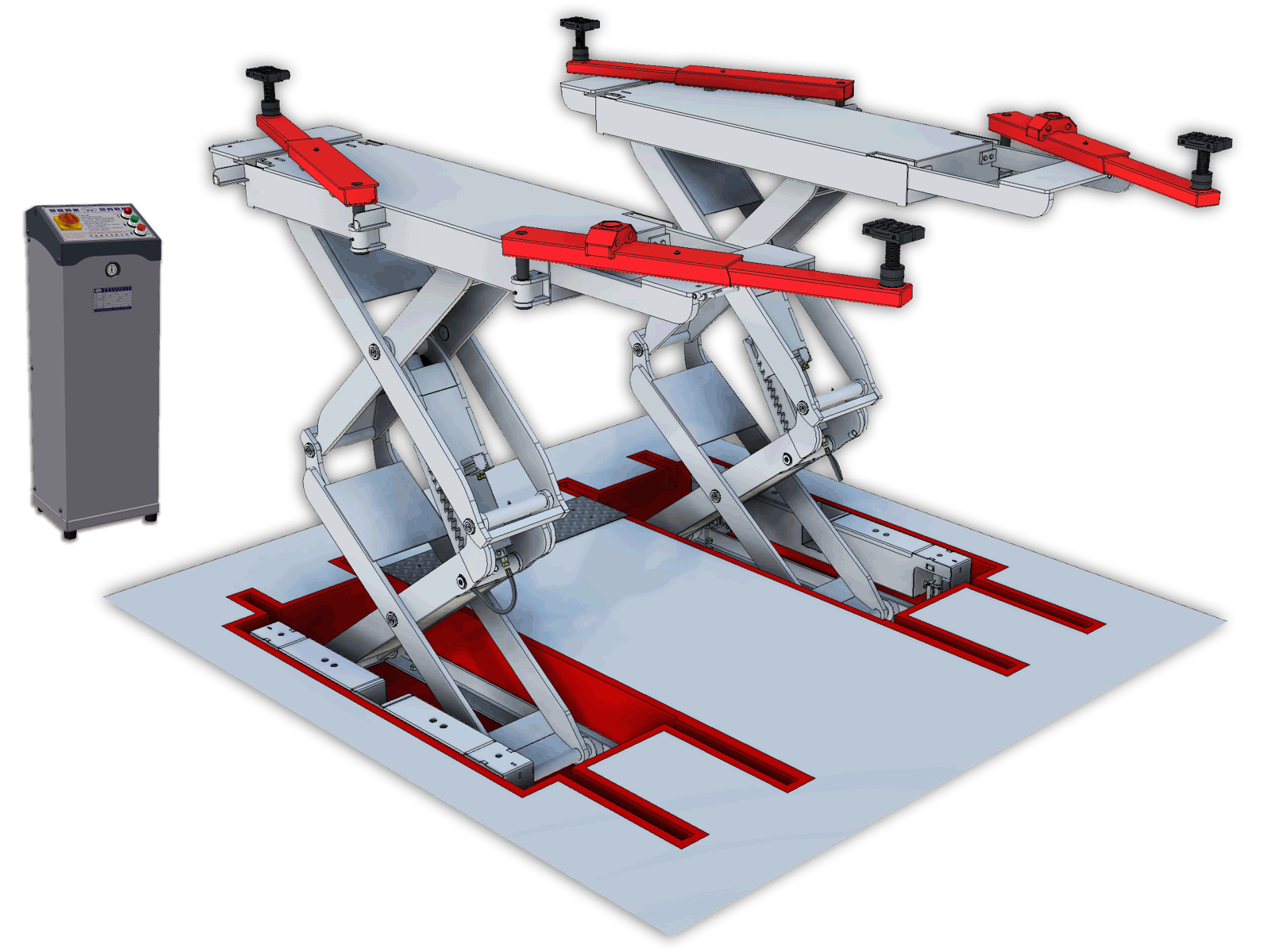 • 頂高平台上方裝置之貨車架,對於休旅車、吉普車、小貨車之頂高作業提供更多方便。